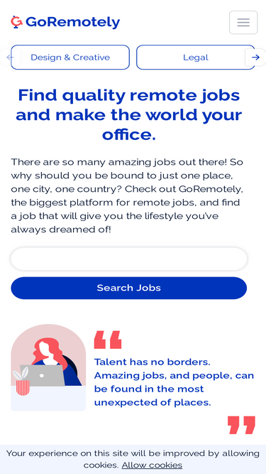 We Work Remotely is the world’s largest platform for finding and listing remote jobs. We have over 230,000 unique visitors to the site, and over 500 new positions posted every month. We Work Remotely launched publicly in 2011. Since then, we have seen over 10,500 jobs posted to our platform and have job seekers visiting us from 99% of the countries on earth. Remote work is truly taking over the world!