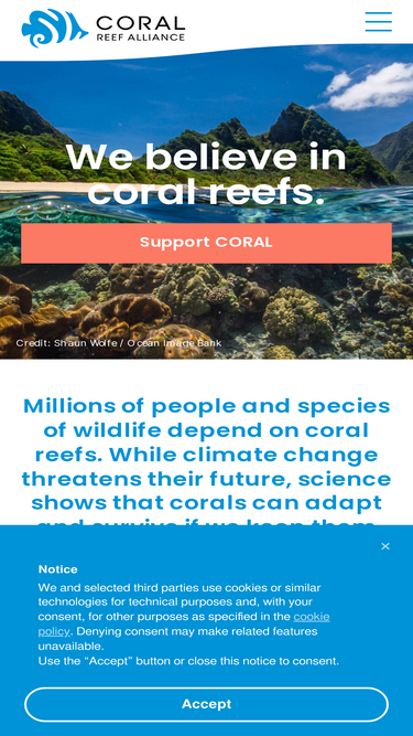 87%Millions of people and species of wildlife depend on coral reefs. While climate change threatens their future, science shows that corals can adapt and survive if we keep them healthy.