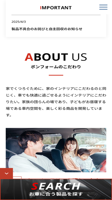 79%ボンフォームはシートカバー、フロアマットなど、自動車用繊維製品、室内装飾製品、アウトドアレジャー用品、ジュニアシートなどの企画・製造卸販売をおこなうカーインテリアの総合メーカーです。