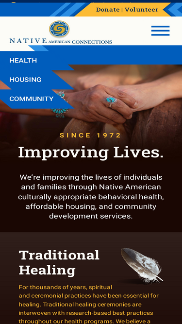 97%native american connections, located in phoenix, az, improves the lives of individuals and families through native american culturally appropriate, behavioral health, affordable housing, and community development services in arizona and in communities across the country. nac provides a variety of income-based housing options, outpatient treatment services, residential treatment services, community service opportunities, cultural and historical education, a medical clinic, and more! for more information, please contact nac by phone or email.