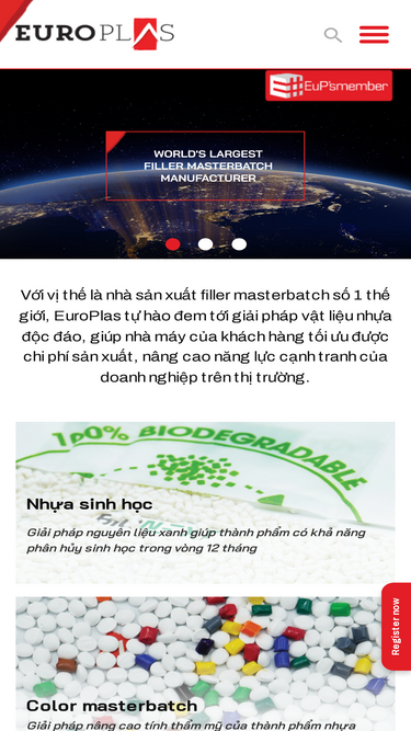 EuroPlas là nhà sản xuất filler masterbatch số 1 thế giới, với các sản phẩm đa dạng như filler, color masterbatch, phụ gia, nhựa kỹ thuật, bio filler