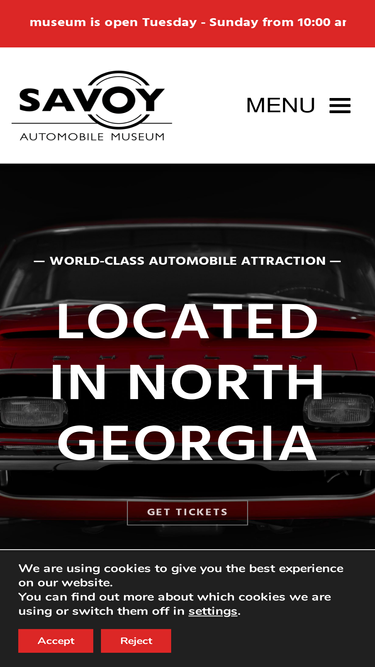 73%Plan your visit to Savoy Automobile Museum in Cartersville, GA, located just off I-75 between Atlanta & Chattanooga. The museum is open Tuesday through Sunday.