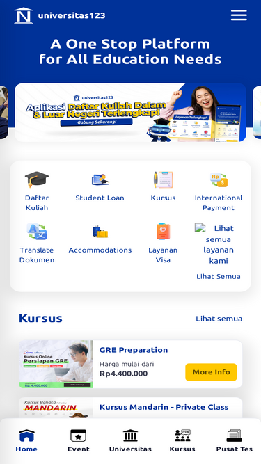 84%Universitas123 adalah platform online pendaftaran kuliah kedalam dan luar negeri. Fitur yang disediakan beragam.