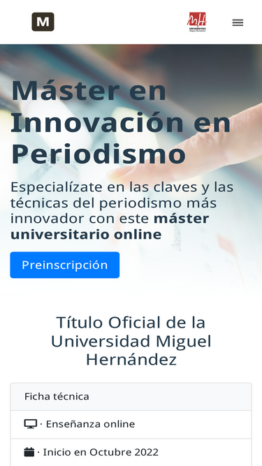 100%Especialízate en las técnicas del periodismo más innovador con este Máster Universitario 100% online profesores de los medios más innovadores en nuevas narrativas, periodismo de datos o redes sociales, gracias a la flexibilidad de las clases en vídeo.