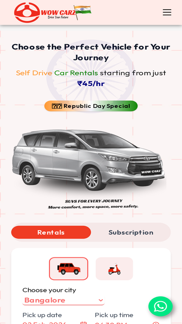 80%Book Car on Rent for Your Family Anywhere in Banglore