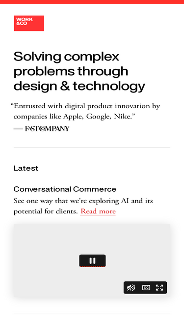 71%Work & Co is an award-winning global product consultancy. We unite hands-on product, design, and technical talent to transform our clients' core businesses at scale.
