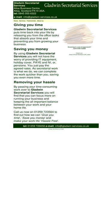 100%gladwin secretarial services - providing admin and secretarial support for smes. based in scotland but covering the whole of the uk