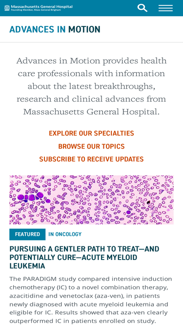 65%advances in motion provides health care professionals with information about the latest breakthroughs, research and clinical advances from mass general hospital.