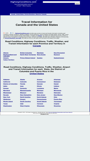 highway and road conditions for canada and the united states. also weather, airport information, flight delays, ferry, traffic and transit information