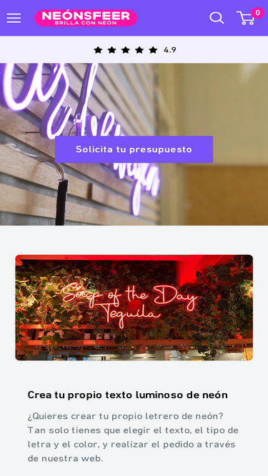 89%¿Diseño de rótulos de neón? Más de 7000 clientes satisfechos. Valoración media 9,6. Iluminación de neón LED personalizada con un 90% menos de consumo de energía, +100% de calidad y servicio.