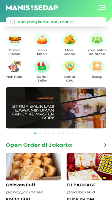 93%MANISDANSEDAP.com - Cara termudah temukan open order PO makanan & menu terlaris di Indonesia, temukan favoritmu dan hubungi penjual lebih cepat.