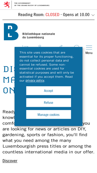 92%Diese Webseite wird von der Bibliothèque National du Luxembourg veröffentlicht. Sie wurde mithilfe des Zentrums für Informationstechnologien des Staates (Centre des technologies de l'information et l'Etat, CTIE) erstellt. Bei Fragen zu dieser Webseite und ihren Inhalten benutzen Sie bitte das...
