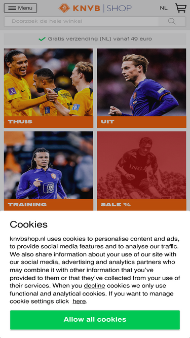 90%welkom op de officiële webshop van de knvb. vanzelfsprekend kunt u hier alles van het nederlands efltal vinden. de complete nike collectie is hier te koop, van de wedstrijdkleding tot en met de trainingskleding zoals gedragen door de spelers op het veld. voor oranje fanartikelen bent u hier natuurlijk ook aan het juiste adres.