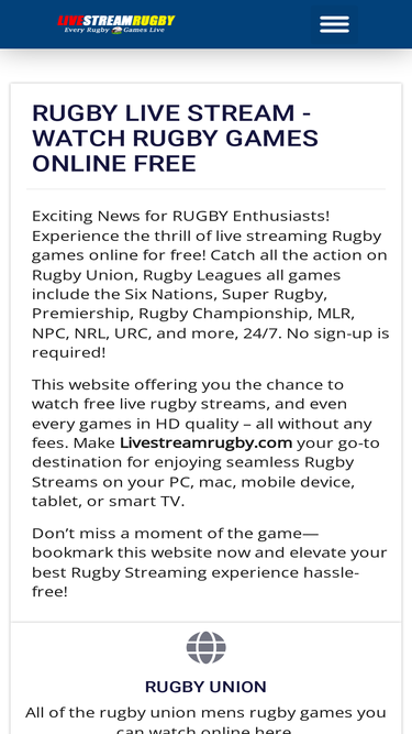 77%Rugby Live Stream Watch Free Rugby Streaming on Your PC, iPad, iPhone, MacBook, iMac and Android all Rugby Matches. Watch Rugby live Free on Apple & Android