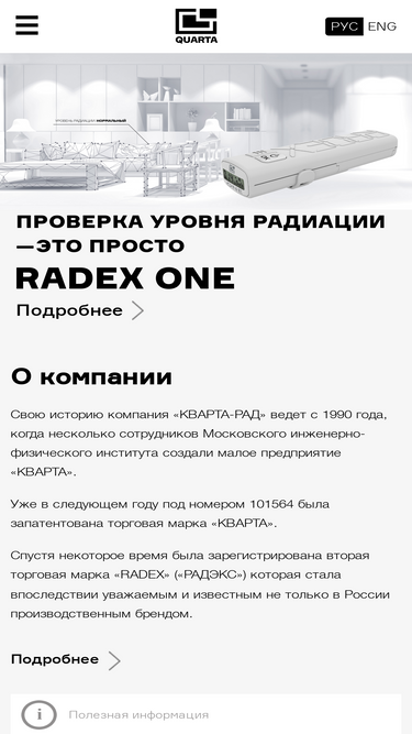 30%более 25 лет кварта-рад разрабатывает и производит приборы радиационного и экологического контроля. наш опыт позволяет нам производить лучшие приборы