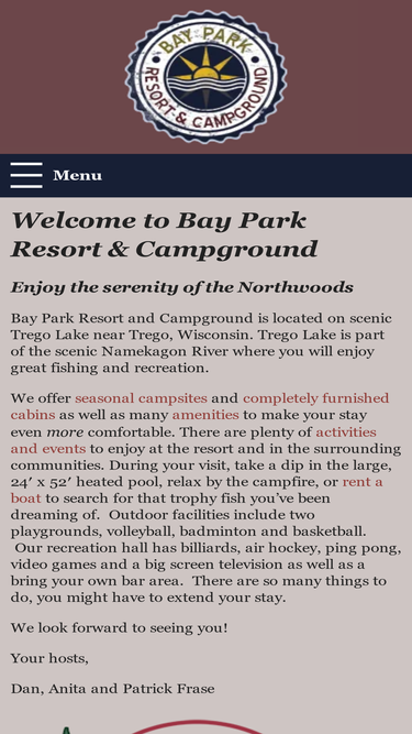 37%Whether you are in our comfortable sleeping cabins or deluxe cabins you will be sure to have allthe comforts of home in Southern Wisconsin.