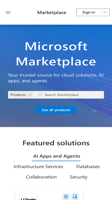 87%Accelerate your AI transformation with Microsoft Marketplace—your trusted source to find, try, and buy cloud solutions, AI apps, and agents to meet your business needs.