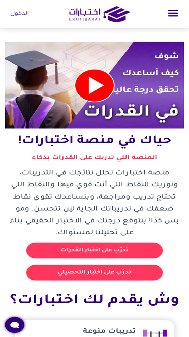 100%تدرب على اختبارك في موقع اختبارات. موقع اختبارات يعطيك أحدث أسئلة اختبار القدرات كمي ولفظي بالذكاء الاصطناعي. بنك أسئلة حديث ومجدد باستمرار. موقع اختبارات يوريك نقاط قوتك وضعفك ويعطيك توقع لنتيجتك في الاختبار الحقيقي بناء على تدريباتك.