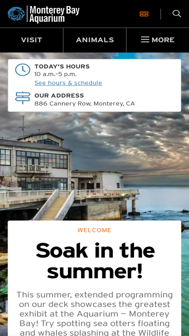 79%located at the ocean's edge on historic cannery row, the monterey bay aquarium is your window to marine life. visit sea otters, penguins, sharks, jellies and thousands of other marine animals and plants.