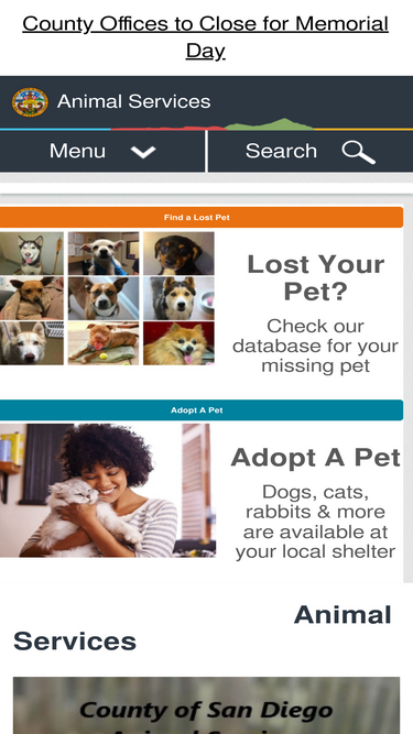 72%Department of Animal Services is the open-admission animal services agency for the unincorporated areas of San Diego County.