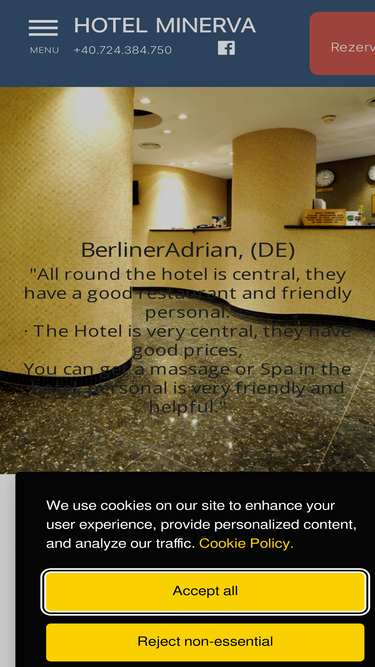 98%hotelul minerva de 4-stele este locul ideal pentru a sta in bucuresti. frumos localizat, in inima capitalei, hotelul minerva ofera confortul de acasa. de la camere single la apartamante clientii vor fi pe deplin satisfacuti deoarece hotelul ofera multiple facilitati ca restautant chinezesc, spa & centru wellness, zona de fitness, parcare si internet gratuit.