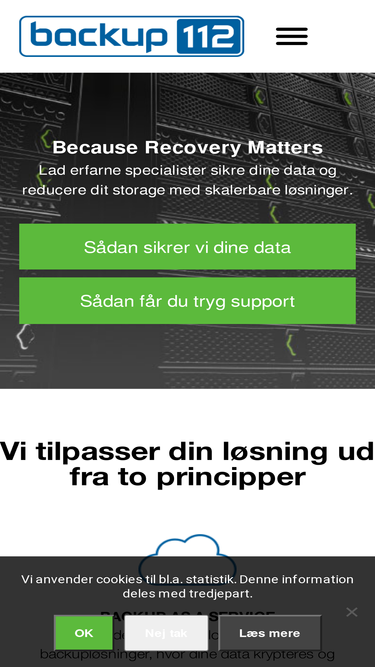 100%Cloud Backup - Vi tilbyder moderne cloud-baserede backupløsninger, hvor dine data krypteres og sendes automatisk til vores sikre, danske servere via nettet.
