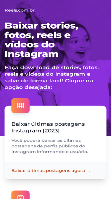 100%faça download de stories, fotos, reels e vídeos do instagram e salve de forma fácil! clique na opção desejada: