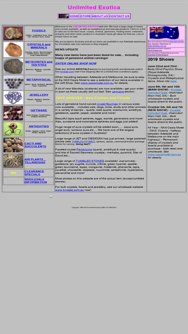 100%fossil and crystal dealer - australia. large range of fossils, crystals, minerals, gemstones and exotic plants.