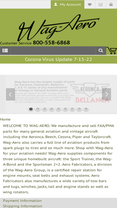 100%welcome to wag-aero. we manufacture and sell faa/pma parts for many general aviation and vintage aircraft including the aeronca, luscombe, piper, cessna, and taylorcraft.