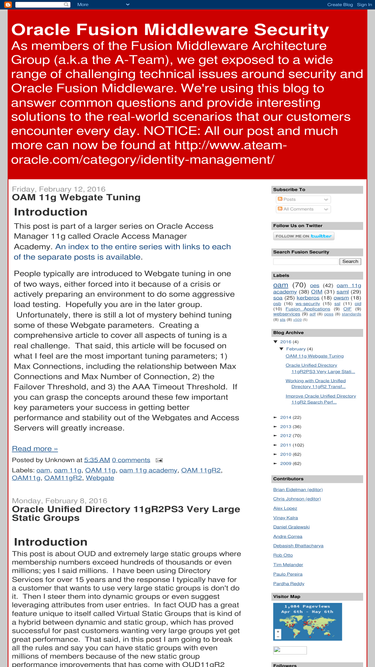 As members of the Fusion Middleware Architecture Group (a.k.a the A-Team), we get exposed to a wide range of challenging technical issues around security and Oracle Fusion Middleware. We're using this blog to answer common questions and provide interesting solutions to the real-world scenarios that our customers encounter every day. NOTICE: All our post and much more can now be found at http://www.ateam-oracle.com/category/identity-management/