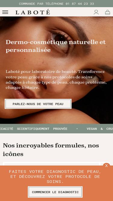 83%Laboté conçoit des soins efficaces concentrés en actifs frais et justement dosés dans notre propre laboratoire à Paris.