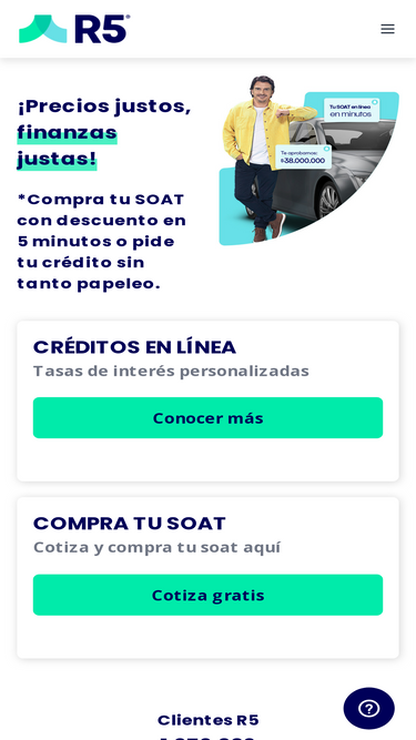 77%Ingresa la placa de tu vehículo y compra tu SOAT con descuento de ley. También descarga la App R5 para recordar todas las fechas importantes de tu vehículo