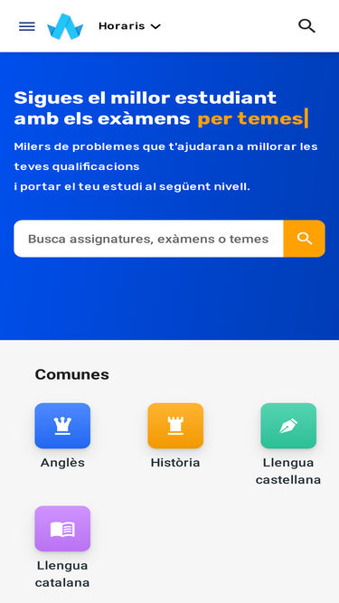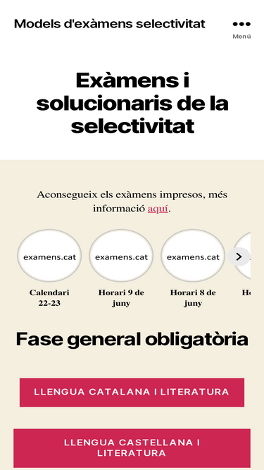 100%En aquesta web podeu trobar tots els exàmens de les PAU (prova d'accés a la universitat) ordenats per matèries des de l'any 2000.