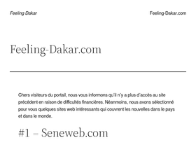84%chers visiteurs du portail, nous vous informons qu’il n’y a plus d'accès au site précédent en raison de difficultés financières. néanmoins, nous avons sélectionné pour vous quelques sites web intéressants qui couvrent les nouvelles dans le pays et dans le monde. #1 – seneweb.com seneweb comprend les nouvelles sur la politique, religion, société. il y a