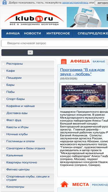 белгородский клуб развлечений - вся информация о местах отдыха в белгороде. описание, фотографии, рейтинги развлекательных заведений, гостиниц и мест культурного досуга, а также новости города и многое другое