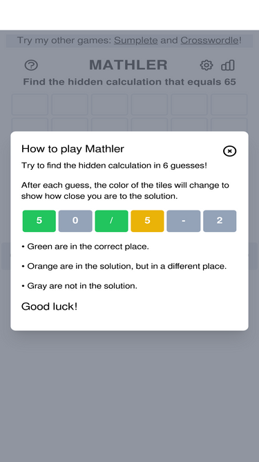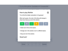 Solve today's free Mathler puzzle: guess the hidden equation in 6 tries. No sign-up. Just a brain-boosting daily number game.