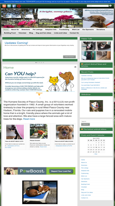 88%The Humane Society of Pasco County, Inc. is a 501(c)(3) non-profit organization founded in 1982. We've placed hundreds of pets into Pasco County Florida homes over the years. Find your best friend here!