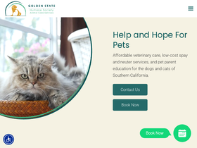 92%established in 1972, golden state humane society provides low-cost spay, neuter, vaccine, and basic veterinary care with a focus on under-served communities and the reduction of unwanted dogs and cats in southern california.