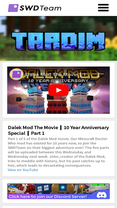 98%SWDTeam make a large variety of web content and software Including modifications for Minecraft, Android Games, Web Animations and much more! you can find most of our content over at our YouTube Channel! or at our Google play developer page. Our company was officially founded in December 2013 thanks to the help of the Awesome dalek mod community.