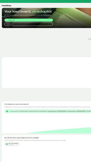 84%FleetWorks uses AI to match freight to empty trucks faster — your AI assistant Sofia supports carriers and brokers to book, track, and service loads.