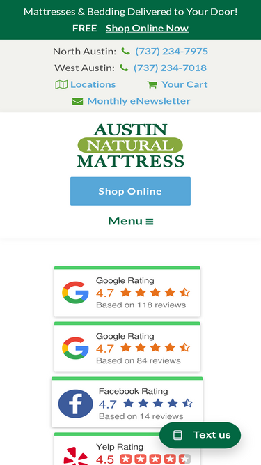 92%Austin, Texas' favorite mattress store and THE source for Natural Mattresses, Organic Mattresses, and Latex Mattresses.