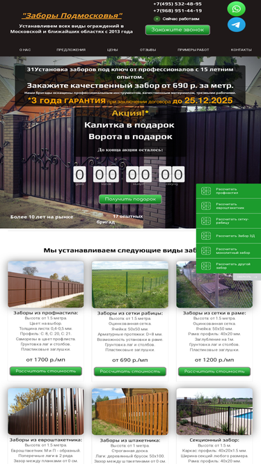 81%профессиональная установка заборов из профнастила,сетки-рабицы,металлического штакетника и других видов заборов. изготовление и установка откатных ворот и автонавесов. гарантия 3 года на работы и 15 лет на материалы