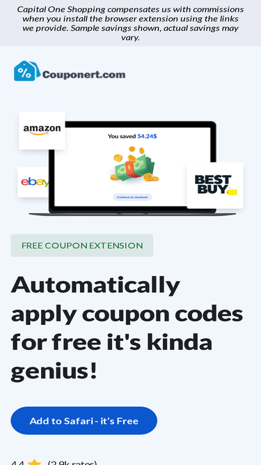 93%automatically apply coupon codes in 1 click at checkout with free capital one shopping extension.