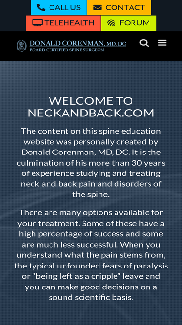 100%Donald Corenman, MD, DC, Spine Surgeon, created this in-depth patient education website and forum to help patients advocate for there own best care.