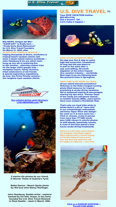 100%u.s. dive travel reps the top dive resorts + live-aboards, for scuba diving & snorkeling vacations in 30+ tropical countries.