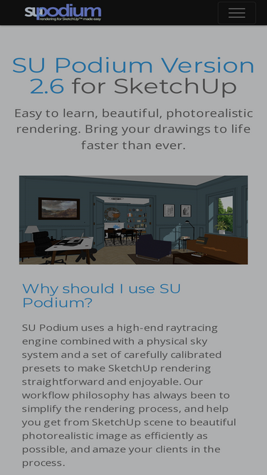 76%su podium is an easy to use rendering plugin for sketchup - add photo realistic lighting, materials, and reflections to your drawings