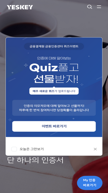 YESKEY, 인증서, 바이오인증, OTP, 마이인포(금융분산ID), My 인증