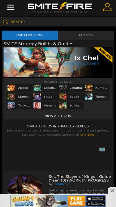 79%SmiteBase - Search smite player profiles and theorycraft builds on a mobile friendly app! SmiteBase is a passion project built with the intent to make viewing player profiles, match history, matches and creating builds a breeze on mobile devices.