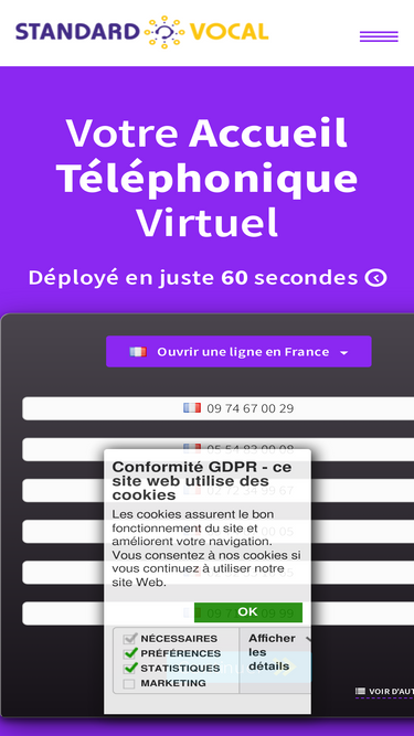 73%créez un standard téléphonique voip en france, belgique, suisse, canada, ... créez un menu vocal, enregistrez les conversations, voix de synthèse, de vraies secrétaires pour répondre à vos appels et d'autres fonctions pour un accueil téléphonique professionnel.