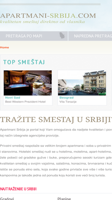 pronadjite idealan smeštaj u srbiji. apartmani, sobe, studio, vile, kuće za odmor, salaši, etno sela, vajati, brvnare, hoteli, moteli, hosteli direktno od vlasnika.